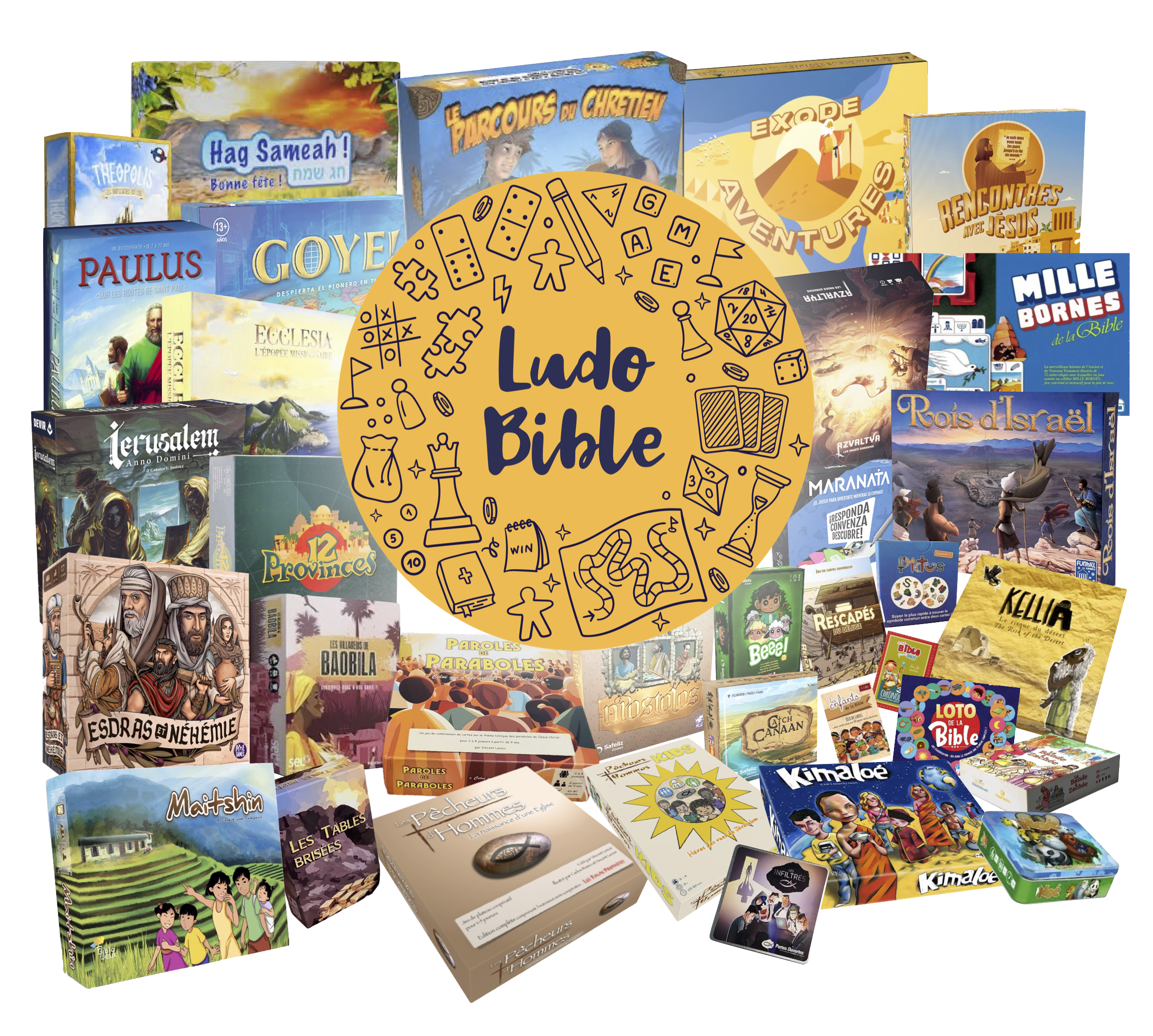 L’équipe de Ludo-Bible a récolté une large majorité de jeux de sociétés à thème chrétien ou biblique actuellement disponibles sur le marché francophone, confectionnant ainsi une belle collection dédiée à toutes et tous, adaptée à tous les âges et aux divers degrés d’expérience ludique (allant de jeux dits « accessibles tout public » jusqu’aux jeux pour joueurs « initiés » ou « experts » en stratégies)…